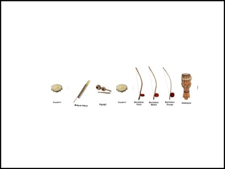 A formação da bateria (conjunto de instrumentos) consiste em (olhando de frente a bateria), da direita para esquerda, o Atabaque, Berimbau Gunga, Berimbau médio, Berimbau viola, Pandeiro, Ago go, Reco reco e Pandeiro.